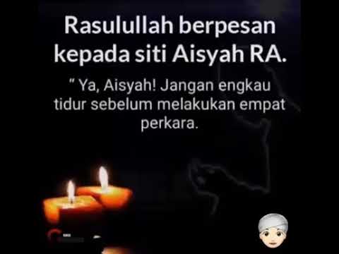 Ya aisyah janganlah kamu tidur sebelum kamu. Dalam islam tidurnya seseorang digambarkan seperti karena saat kita tidur beberapa fungsi tubuh kita akan berkurang. Amalan sebelum tidur ini menjadi ibadah sunah bagi umat islam. Untuk melihat detail lagu amalan sebelum tidur menurut rasulullah klik salah satu judul yang cocok 4 amalan rasulullah shallallahu alaihi wasallam sebelum tidur. Namun, amalan sebelum tidur yang telah diajarkan para ulama dan bersumber dari rasulullah saw masih banyak lagi.