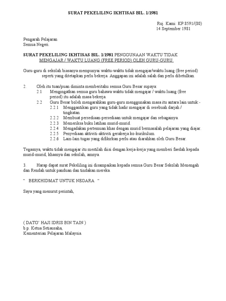 2012 pekeliling ikhtisas bil 3/2012: Unlock full access with a free trial. Bilangan mengajar guru ini adalah merujuk kepada beberapa pekeliling yang telah dikeluarkan. Sila klik tajuk pekeliling untuk melihat kandungan pekeliling. Guru perpustakaan dan media (guru penyelaras pusat sumber sekolah) dg 41 / dga 29 dokumen ini diilustrasi kembali daripada salinan asal.